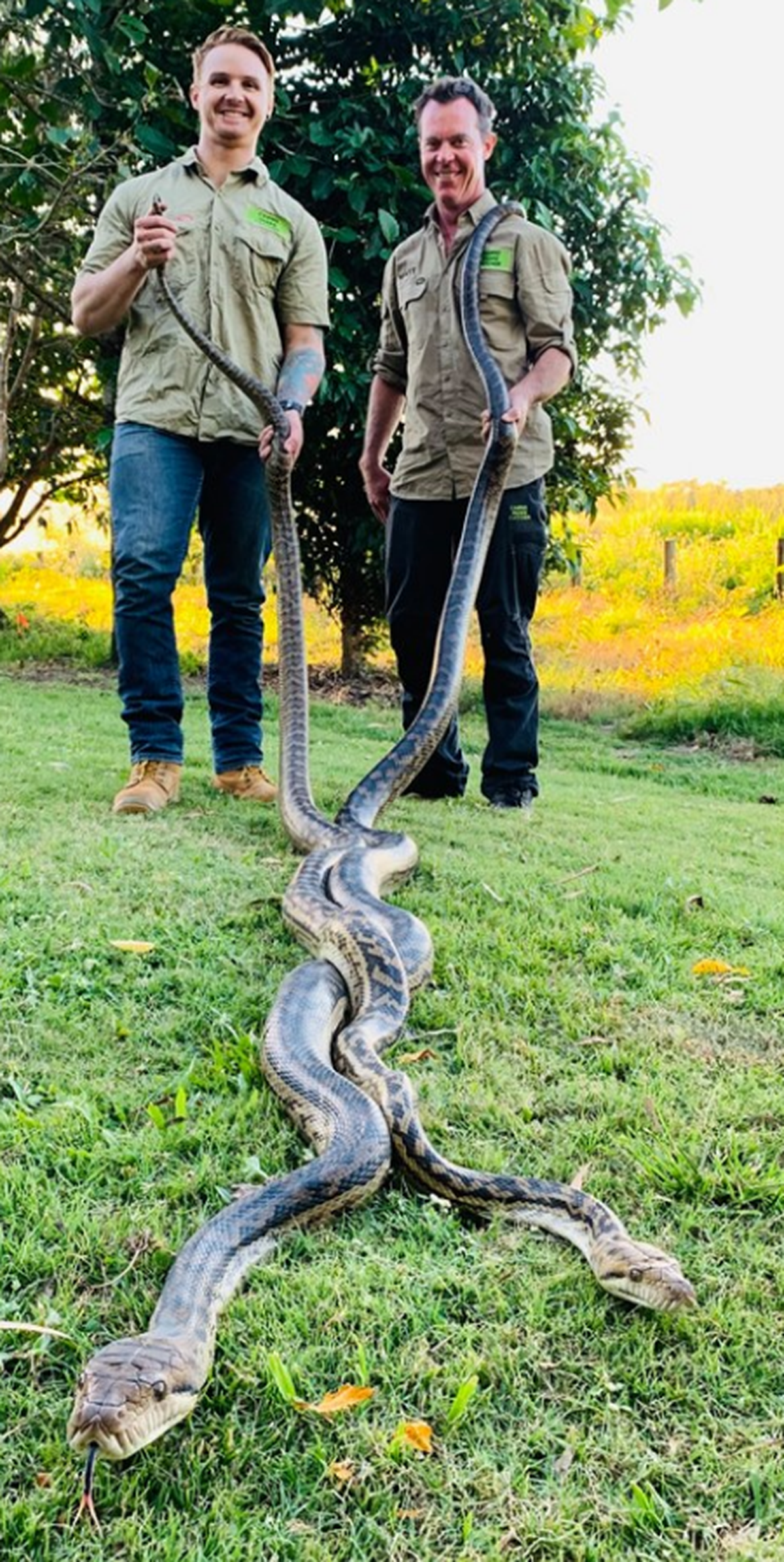 , уже под пять метров особь, не нашло ничего лучшего, чем заняться любовью на чердаке квинслендского дома. Будто не знают они, из чего их делают, эти дома, к югу от Кэрнса. Фанера одна - потому что все равно до первого урагана... В общем, хозяева сначала заметили, что потолок у них ходит ходуном и прогибается внутрь. А потом потолок не выдержал страсти - и упал, а хозяева решили не стоять на пути сорока с лишним кило высоких чувств, и смылись, а змеевозку вызвали уже снаружи. Мораль: змеи - ищите себе надежную крышу. Хозяева - ну вы сами поняли...