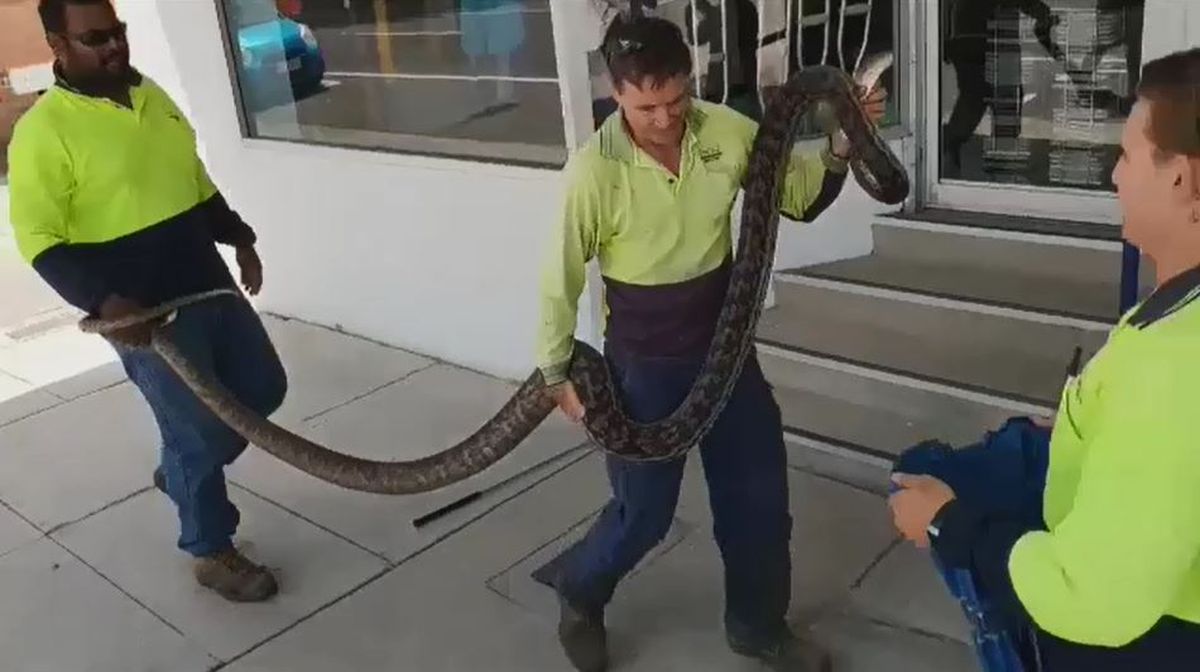 просто-напросто выпал на улицу с крыши квинслендского магазина - потому что объелся и не удержался собою на карнизе. Владельцы, естественно, вызвали соотв. службу и гурмана увезли. Особые подозрения внушает то, что шесть лет назад в этом же магазине был обнаружен другой такой же товарищ. Так что окружающие теперь озабочены вопросом - что ж у них там водится в магазине, что привлекает таких посетителей?